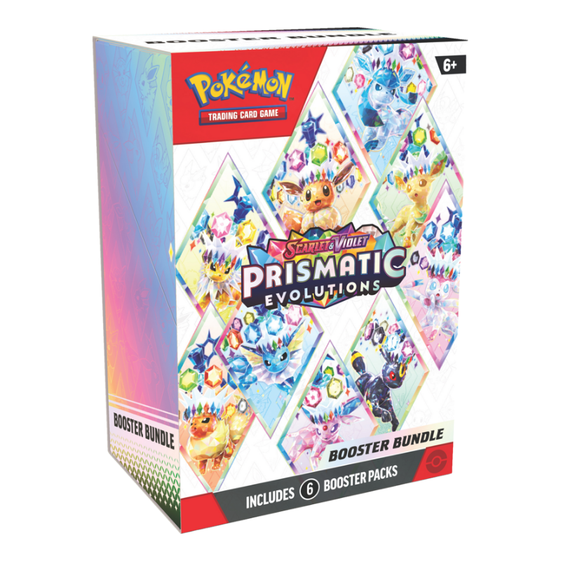 From fluffy and fiery to freezing and fanciful, Eevee and its many Evolutions hold a special place in the hearts of Pokémon Trainers across the land! Discover their unique new powers as Stellar Tera Pokémon ex, and look for treasure of your very own across a grand gathering of Pokémon ex from Paldea and beyond. Glittering gems and hidden patterns await at the end of the rainbow in the Pokémon TCG: Scarlet & Violet Prismatic Evolutions expansion!